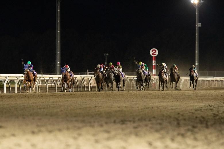 寒空の下のカクテル光線に照らされ、エーデルワイス賞JpnⅢのパドックに姿を見せたのは、15頭のうら若き乙女達(ウワサノシブコは出走取消)。どの馬も寒さを感じさせないような、軽快な脚取りで周回を重ねていく中、1番人気に支持されたのはデビュー2戦目から4連勝、前走リリーカップでは2着馬に7馬身差の快勝を果たしていたソロユニット。