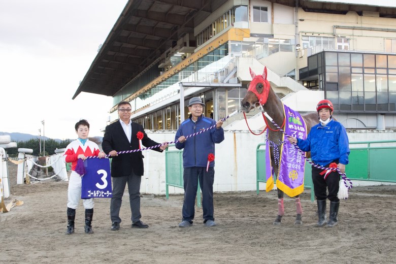 向正面ではトンデコパ先頭、2番手にゴールデンヒーラーという展開に変わり、徐々に後続を離していく。「スピードで押してくる北海道勢に対応できるか」と佐藤祐司調教師は戦前に懸念していたが、ゴールデンヒーラーは最後の直線で楽に抜け出し。後続からは唯一ルビーブランケットが鋭く脚を伸ばしたが、クビ差及ばなかった。