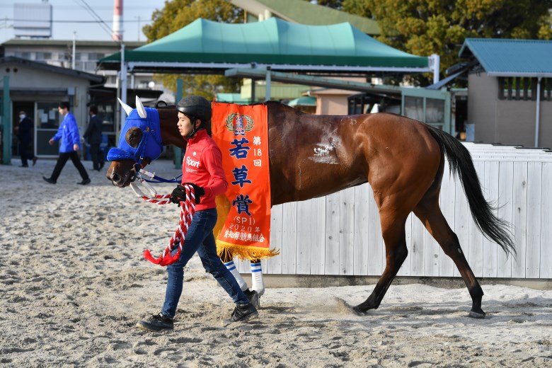 スピードで押し切るタイプなだけに、気になるのは距離が延びてどうかだが、新子調教師は「今日のレースぶりなら、1800メートルでも折り合いがつくのではないでしょうか」と見通しを立てた。次走は地元・園田の菊水賞(4月16日、1700メートル)や再び名古屋でGDJ・東海クイーンカップ(4月21日、1800メートル)などいくつか候補があるが、「まずはオーナーと相談してから」と新子調教師。それによって、さらにその先の大目標も決まっていくことだろう。