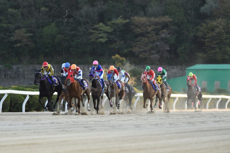 スタートから抜け出したのはミスカゴシマとキタカラキタムスメの佐賀勢2頭。ミスカゴシマがハナを奪い、キタカラキタムスメが外を併走したが、激しく競り合うところまではいかず落ち着いた流れとなった。