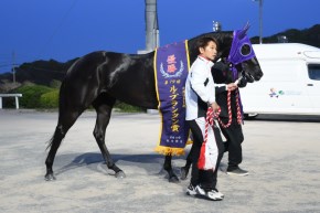 前回がちょっと可愛がりすぎたので、今回は(追い切りを)一本キツめに行ったら期待どおりの走りだったです。この後は佐賀皐月賞、九州ダービー栄城賞です。佐賀にミスカゴシマという強い馬がいるんだというところを皆に見せたいですね。