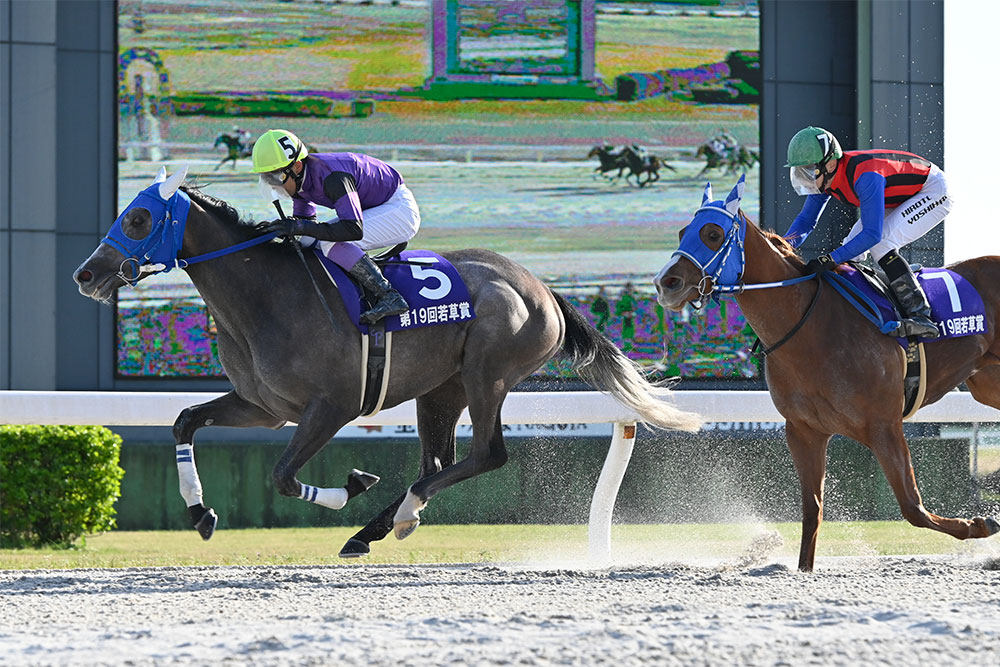 グランダム・ジャパン3歳シーズンの初戦、若草賞には、今年もそのタイトルを狙って他地区から5頭が遠征。過去5年で地元馬の勝利は2019年のゴールドリングしかなく、ほか4回は遠征馬のワンツーで決着。今年も遠征馬が能力の高さを示す結果となった。