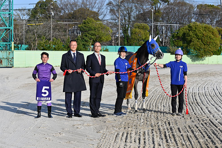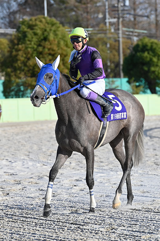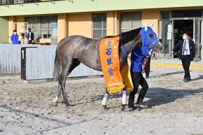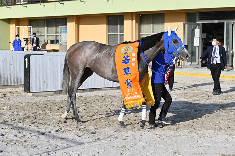 管理する新子雅司調教師は、この日名古屋競馬場には不在だったが、あとで話を聞いたところによると、グランダム・ジャパンを狙って地元ののじぎく賞(5月13日)を予定しているとのこと。「間隔を詰めて使いたくないので、その間に使うかどうかは馬の様子を見ながら」とのことだった。