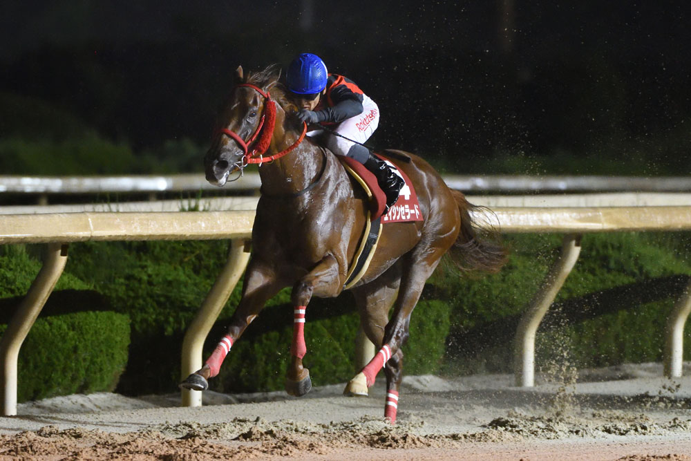 今回が兵庫移籍2戦目。JRA時代にはダート1800メートルで4勝を挙げ、ダートグレードにも挑戦したエイシンセラード。移籍初戦で1400メートルを使ったのは「距離よりも馬の状態に合わせた結果」(橋本調教師)とのことで、今後はGDJの一戦・読売レディス杯(金沢)が有力だ。