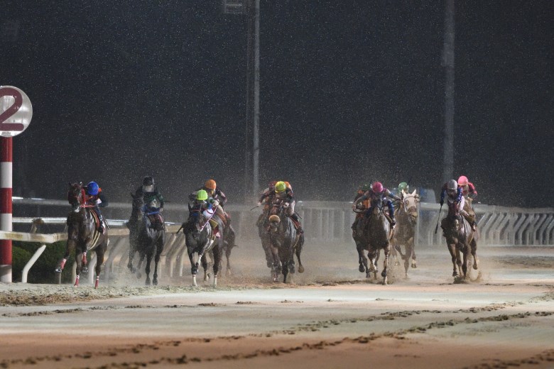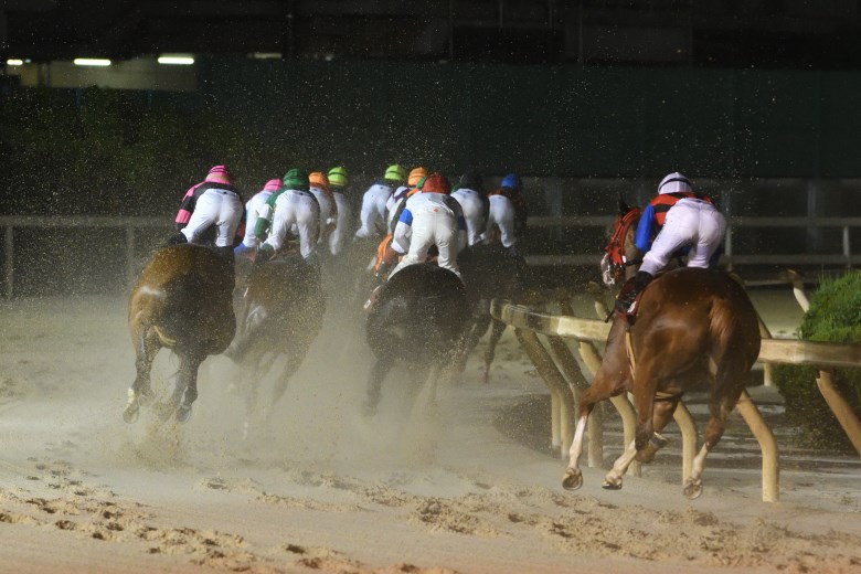 この日は第9レースのパドックの頃から雨が降り始め、馬場状態は稍重に変更。無観客競馬で歓声がないからだろうか、レース発走直前には蛙の鳴き声がスタンドに響いた。