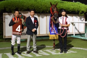 エイシンセラードを勝利に導いた田中学騎手は検量室前に引き揚げてくると、担当厩務員と笑顔で言葉を交わした。さらに、この日は管理する橋本忠明調教師の誕生日。田中騎手が「いいプレゼントができたかなと思います」と笑うと、橋本調教師は「スタッフも一生懸命やってくれていますし、田中騎手も上手く乗ってくれました」と答えた。