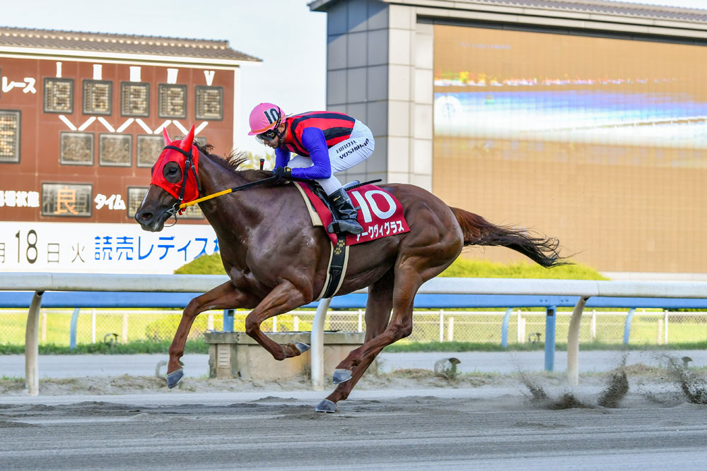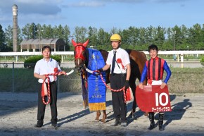 勝ったアークヴィグラスは、東京2歳優駿牝馬以来、じつに1年8カ月ぶりの勝利となった。南関東では浦和・桜花賞3着、東京プリンセス賞2着と好走したものの、その後は5着が最高という成績。デビューした北海道・小野望厩舎に戻って、ヒダカソウカップ2着、グランシャリオ門別スプリント4着から臨んだ一戦だった。