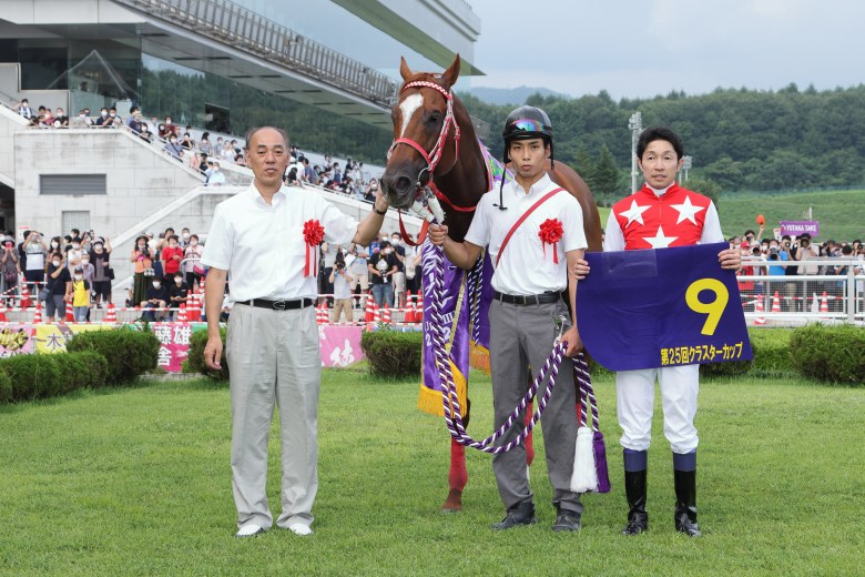 テンに速いと思っていたけど今日は2番手から差したんでね。指示は出してないですよ、騎手に任せてますから。2番手でも自分のペースで行けたのが良かったんでしょう。逃げた馬が止まらないんじゃないかとも感じたので、差し切ってくれてホッとしました。