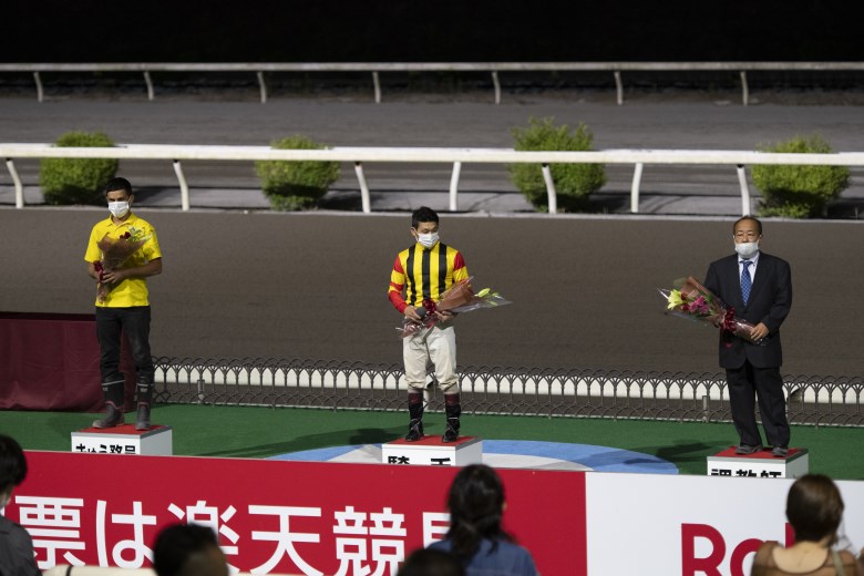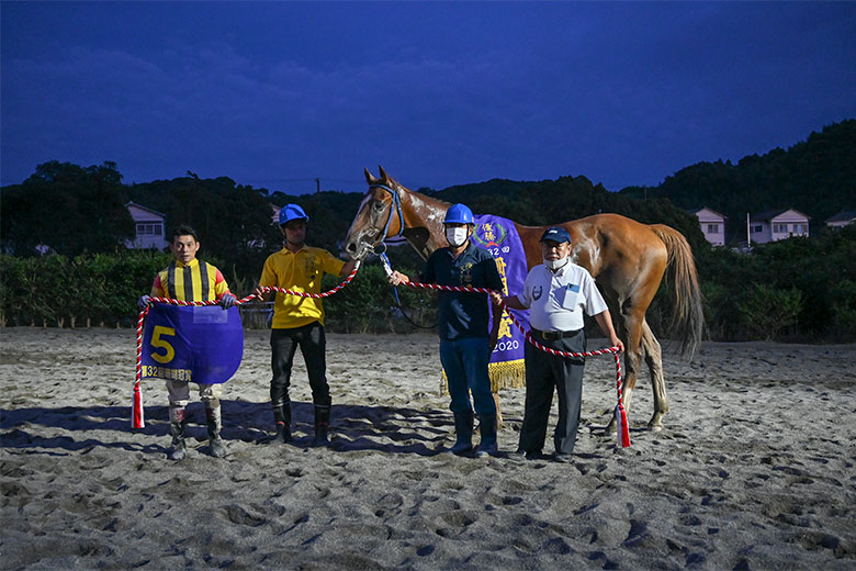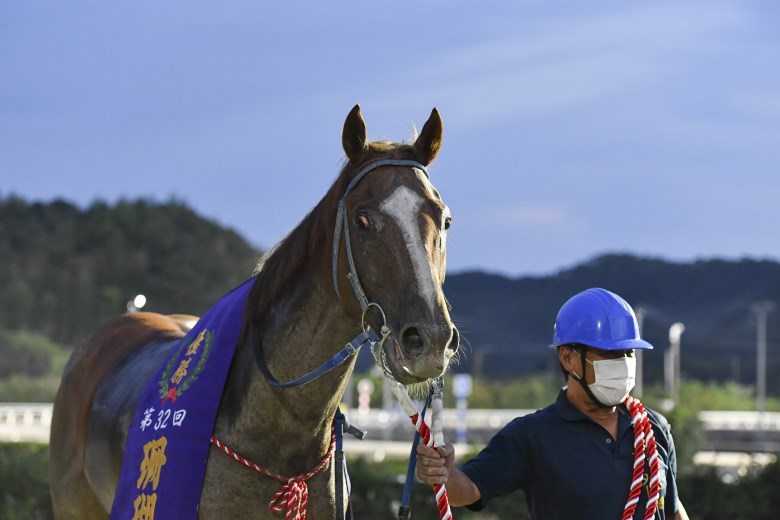 スペルマロンはその実績馬を圧倒したのだから、手綱を取った倉兼育康騎手はさぞかし気持ちよかっただろうと思ったのだが、脱鞍所に戻ってきた倉兼騎手は「いやあ、緊張した」と言いながら下馬していた。それについて聞くと「前走でスタート直後に落馬して、そのあと先々週のレース(天候悪化で取りやめになったA1戦)に出走する予定だったのを回避してもらって、ここ一本に絞って乗り込んできたんです」という経緯があったそうで、気持ち的に背負うものが大きかったのだろう。スペルマロンはこれで重賞3勝目。このあとは「高知県知事賞の連覇を狙います」(別府調教師)とのことだ。