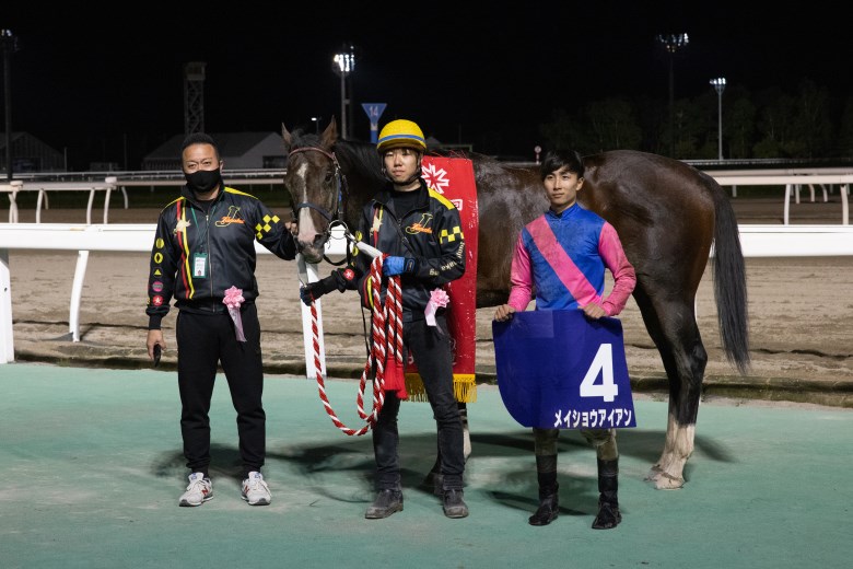 砂を被るとコーナーで動けないタイプなので、内枠を引いたのが心配でしたが、勝負所で外に持ち出した後はギアが上がり、届いてくれ!という気持ちで追いました。いつも一生懸命走るメイショウアイアンには、感謝の気持ちで一杯です。次走も、良い状態で挑めるよう、しっかり調教していきたいと思います。
