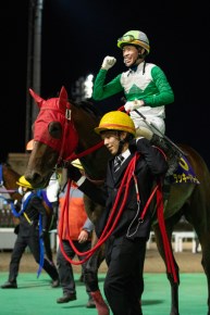 乗り手に従順で、乗りやすい馬です。レース前からハイペースが想定できましたので、じっくり構えていこうと思っていました。外から何か来ていたのは感じていたので、最後まで気を緩めず、しっかり追いましたが、勝利を確信した瞬間は、本当に嬉しかったです。今後の成長も楽しみです。