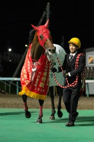 芝を走った疲れが多少残っていた前走より、間隔を空けて立て直した今回は、状態も上がっていました。中央馬もいるので、ペースが速くなると思っていましたから、巻き込まれないようにと指示を出しましたが、石川倭騎手がうまくエスコートしてくれました。この後は、全日本2歳優駿に向かいます。