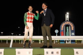 矢野騎手は8番人気での勝利に、「もちろん狙ってはいたけど、信じられない気持ち」と目元に笑みを浮かべた。一昨年の春から手綱をとり、「南関でもなかなかタイトルを獲れなかったけど、これだけの力があることを証明できた。思い入れのある馬だし、大井の馬で中央勢を負かすことができてうれしい」と、地元で大仕事を成し遂げた充実感を口にした。