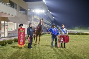 第1戦はテンに頭を上げて進んでいかなかったですが、外に出すとじわじわ伸びて何とか届いてよかったです。勝ちきれたことが総合優勝の勝因だったと思います。第2戦もコンスタントに走っている馬でチャンスはあるかなと思っていました。トップジョッキーの中で地元で勝たせていただいて励みになります。