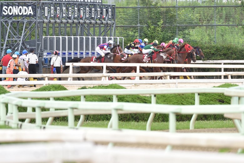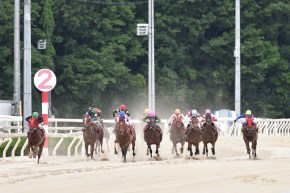 好ダッシュを見せたのはエイシンエンジョイ。「いつも以上に出ました」(下原理騎手)とハナに立ち、コンドルヒデオやスリングショットはその後ろの集団に続いた。
