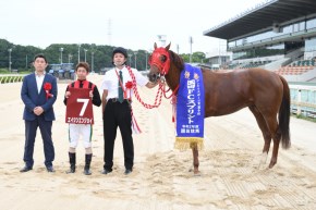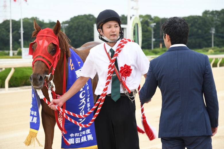 楽に逃げられてチャンスだと思いました。一息で走る馬なので、気を抜かせないように注意しました。ダノングッドが差してくるだろうと最後まで一生懸命追っていましたが、レース中には気づきませんでした。無観客競馬が解除されれば、またファンのみなさんも園田競馬場に来てください。