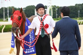 ゲートに付き添っていてゴールの瞬間はどちらが勝ったか分かりませんでしたが、スタートを決めた時点で「よしっ!」と思っていました。馬がすごく充実してきて、今年はここまで予定通り順調に使えているのも強みのひとつ。距離は1400メートルまでかなとは思いますが、今後はオーナーと相談して決めます。