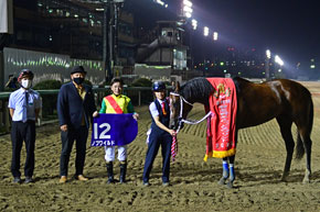 メンバー中唯一のダートグレードウイナーだったノブワイルドが、格の違いを見せつける圧巻の勝利を飾った。「素晴らしい地力で、さすがとしか言いようがありません。馬を称えるしかないです」と、相棒の頑張りを労っていた鞍上の左海誠二騎手。