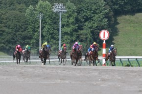 好スタートを決めた池谷騎手、秋山稔樹騎手、吉井騎手が先頭を争い、岩手で逃げて5戦4勝という馬に騎乗した関本騎手が5番手を追走する流れは、遠くから見ても速いと感じるものだった。
