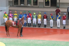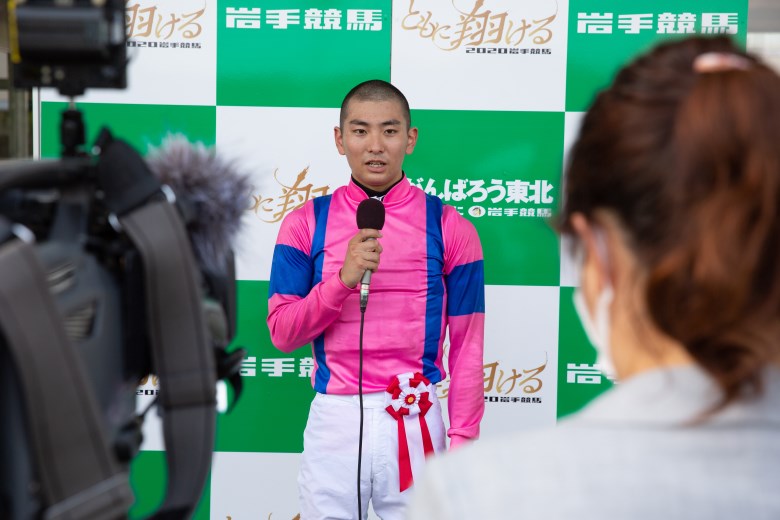 その代わり、出場騎手が騎乗前に整列したときには、たくさんのカメラが向けられた。盛岡競馬場で戦う地方騎手は、地元岩手の塚本涼人騎手と関本玲花騎手、浦和の福原杏騎手と中島良美騎手、大井の吉井章騎手と大木天翔騎手。さらに落馬負傷で休養中の中越琉世騎手に代わって、川崎の古岡勇樹騎手、池谷匠翔騎手(佐賀で期間限定騎乗中)が加わった。