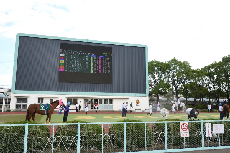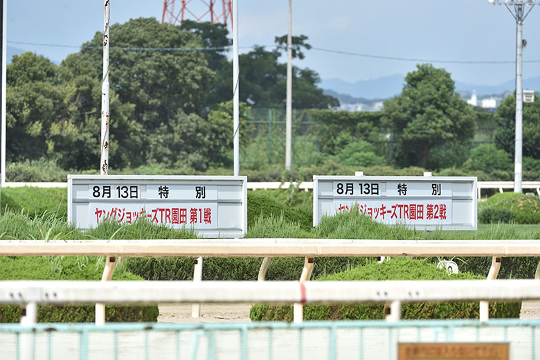 西日本地区でのヤングジョッキーズシリーズ(YJS)開幕戦となったトライアルラウンド園田。暑い日差しが降り注ぐ中、JRA5名、地方7名によって行われた。各地で少しずつファンの入場が再開されているものの、園田競馬場では引き続き無観客競馬。騎手紹介式がない代わりに、ライブ中継のなかで各騎手の意気込みVTRが流された。