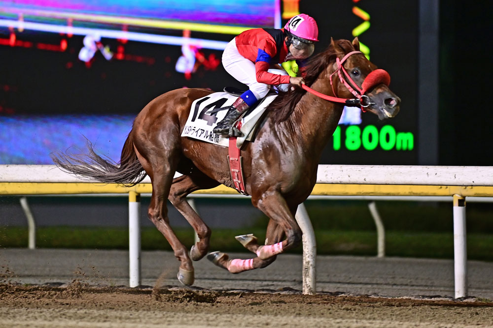 ひとつレースをはさんでの第2戦は、C2クラスではほとんど実施されない1800メートル戦。出走馬で唯一、船橋での1800メートルに経験があるガイディングスターにしても、一昨年6月のヤングジョッキーズシリーズ以来だ。馬も騎手も大半が不慣れという条件ならば、スローペースになったのは仕方ないところで、しかも出走14頭がすべて、前走で勝ち馬からコンマ9秒以上の差で敗れているという成績。