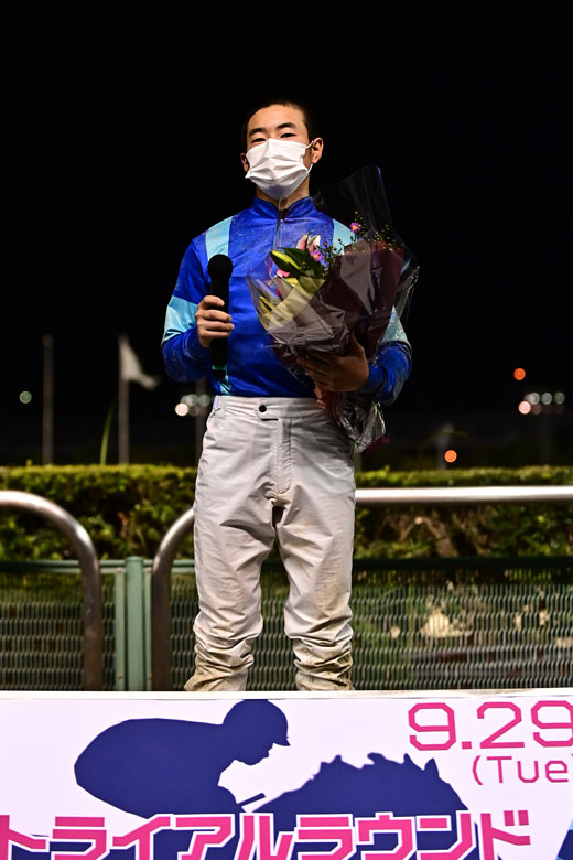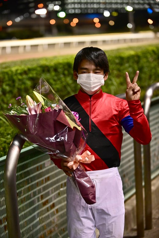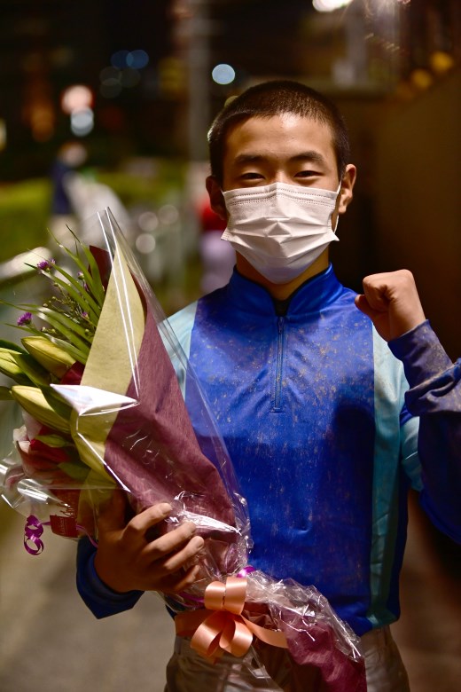 向正面で外から一気に来られたとき、自分もつられて行きそうになったのですが、そこで抑えることができました。最後まで手応えがよかったので、これなら大丈夫だと思いましたし、第1戦の経験をいかすことができました。これが南関東の競馬場での初勝利なので、とてもうれしく思います。