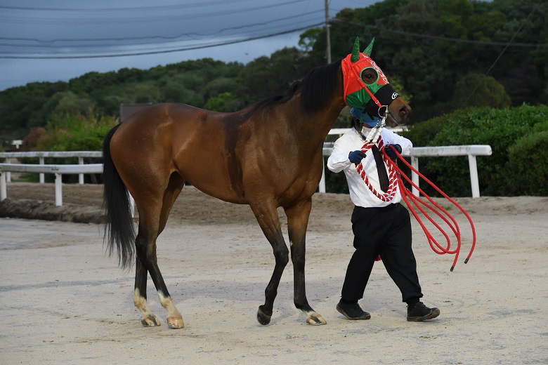 令和3年度の佐賀競馬はナイター開催を拡充し、春季は4月2日から5月9日まで『ほとめきナイター』を実施。この日は朝方からの雨は去ったものの、その影響は残り馬場状態は不良。ナイター開催ではあるが、従来通りの18時台(第5レース)に組まれたル・プランタン賞を迎える頃には1コーナーから4コーナーに向けて強風が吹き付け、肌寒い曇り空の下での発走となった。