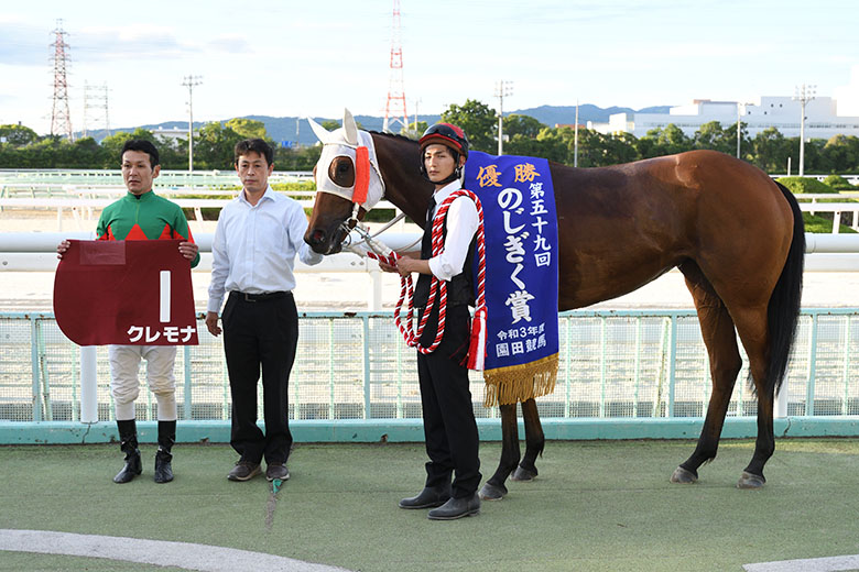 北海道でデビューし、昨年11月に兵庫に移籍してきたクレモナの父はクラグオー。1歳上の同産駒2頭も勝利を挙げており、いずれもクレモナと同オーナーの生産・所有馬だ。クラグオーの全姉・クラキンコは牝馬にして北海道三冠馬に輝き、クラグオー自身も2600メートルの重賞・ステイヤーズカップを制覇している。その血を受け継ぐクレモナの距離適性については「折り合いがつくようになればもう少しもつようになるかもしれませんが、現時点では1700メートルがギリギリじゃないでしょうか」と長倉調教師。とはいえ、田中騎手は「奥があります」と感じており、さらなる飛躍が期待される。