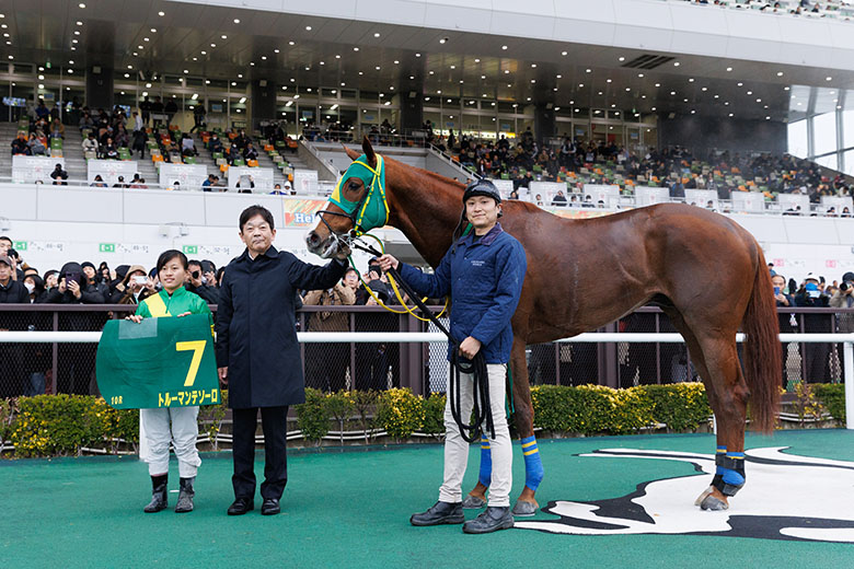 「最後の直線は応援が聞こえて、諦めずに追いました」と塩津騎手。その中には地元・兵庫から駆け付けた記者や実況アナウンサー、そしてファンも数多くいて、表彰式後は彼らとハイタッチ。さらに単勝が3390円ついたことを知ると、「応援に来てくれた人たち、いい思いできたかな?」と思いを馳せた。