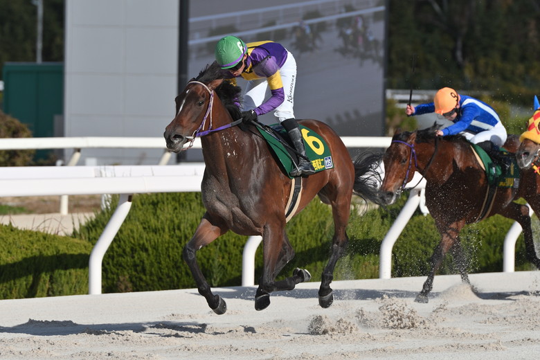 芝2000メートルの中京第1戦は、ハナを主張した古川騎手に、神尾騎手が競りかけ3番手以下を離す展開。競り合った前2頭には厳しい展開に思われたが、直線で振り切った古川騎手が粘り込んだ。YJS・FRで女性騎手の勝利は初めてだった。