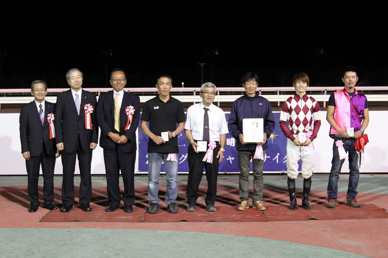今年は初年度以来となる14頭が揃ってフルゲートでの発走となったが、一冠目の「栄冠賞」に出走していたのはオヤコダカ(3着)ただ1頭。夏の間、JRA函館、札幌へ遠征して芝レースで経験を積んだ期待馬を含め、さまざまな路線を歩んできた馬たちによる顔あわせとあって、ファンの興味を大きく惹き付ける一戦となった。