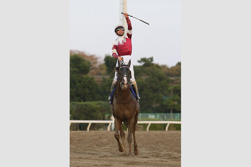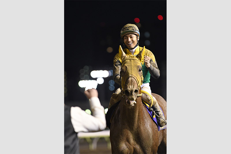 地方でジーワンを勝っていなかったから本当にうれしいです。やはり1200~1400メートルでは強いですね。ゲートでも落ち着いていたし、前走のように道中でプレッシャーを受けるようなこともなく、いい手ごたえで直線を迎えられました。でも、最後は太陽がまぶしかったですね。
