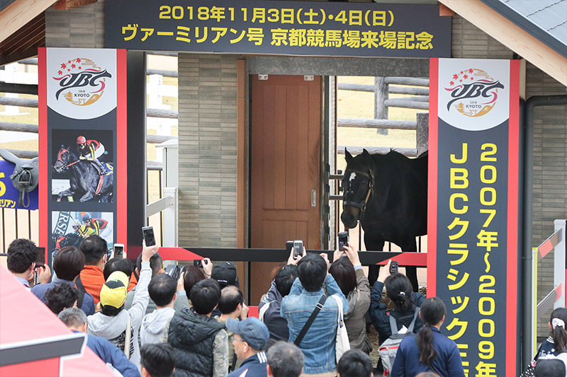 すでに終了したJBCレディスクラシックJpnⅠとスプリントJpnⅠの1着馬と2着馬の差はともにアタマ。2戦続けてきわどい勝負が続くと場内の熱気がさらに高まるのは必然で、JBCクラシックJpnⅠのパドックはかなりの人口密度になった。