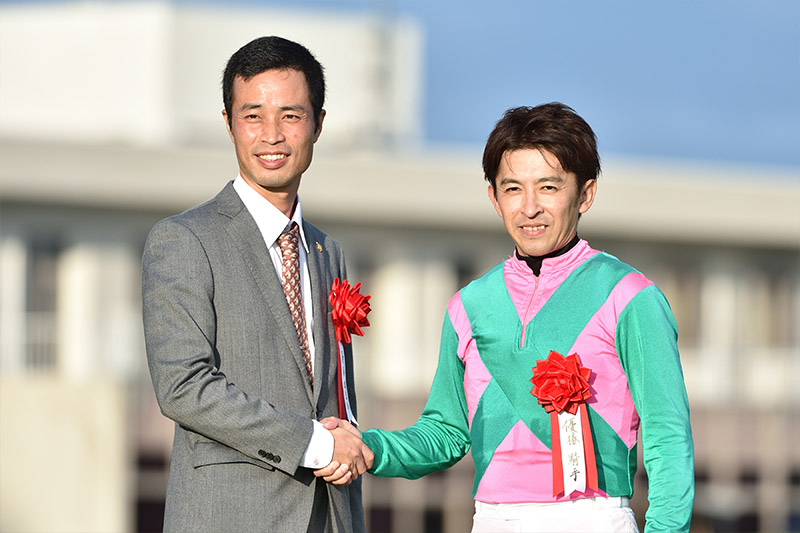 その戦いを制した長谷川浩大調教師は「クラスターカップを勝ったあと、東京盃に行く選択肢もあったのですが、ここが目標だったのでオーバルスプリントにしたんです。そのときに浦和競馬場を経験したことが、ここで生きたのかもしれませんね」と話して、感無量という表情に。開業1年目でのJpnⅠ制覇という快挙は、長谷川調教師が調教助手時代からたずさわっていた馬がもたらすことになった。