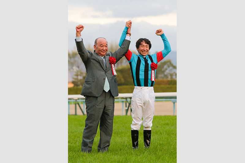 いつも笑顔の荒山勝徳調教師だが、このときばかりは感極まり、涙と想いが溢れ出た。「胸がいっぱいです。万全な状態でレースに臨めたことがないのですが、それでもいつも一生懸命に走ってくれる馬。今日は冷静に見ていられず、とにかくがんばってくれとしか思いませんでした」