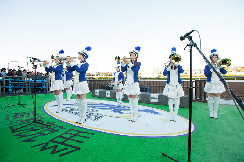 競馬場内のイベントは最小限にとどめられた。馬場の中央を左右に藤右衛門川が流れる敷地。スタンドは河岸段丘の段丘崖に建てられ、出走馬は段丘面にあるパドックから坂道を下って馬場に入場する。もともとイベントを実施できるような場所が少ないうえに、パドック脇の芝生広場には仮設の臨時記者室と馬主下見所観覧席が設置され、通常よりもスペースが限られていた。イベントを最小限にしただけではなく、予想士の場立ち台を通常とは違う正門通路沿いのパドック向きに移動したり、畜産サンプリングキットの配布が行われたテントは配布終了とともに撤去するなどして、ファンが滞留しそうな場所を広めに確保。北門付近で行われたグルメイベント以外は浦和駅東口駅前市民広場でサテライトイベントを行い、場内は純粋に競馬を楽しみたいファンのための空間になっていたと思う。その甲斐だろうか、1Rから直線の攻防に大歓声。早くも見たことのない光景が広がっていた。
