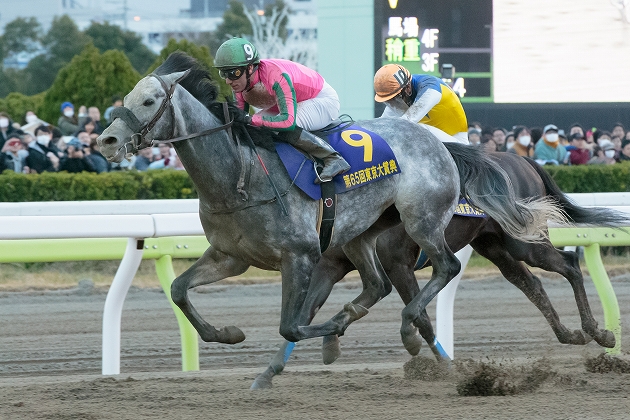 デビューから6連勝でチャンピオンズカップを制し、3歳でダートの頂点に。今年、海外遠征のサウジカップでは7着に敗れたが、続く前走の帝王賞では3番手から抜け出して快勝。国内では7戦7勝と無敗だけに主役の座は譲れない。