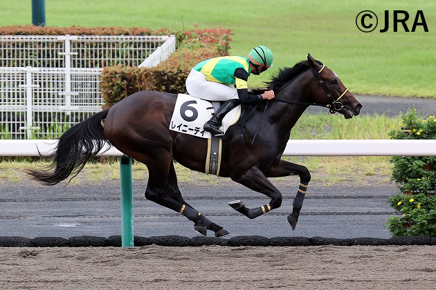 衝撃的だった新馬戦。シャドーロールを着用し絶好のスタートでハナに立つと4コーナーでは後続を離していく。直線半ばではジョッキーが後ろを振り向く余裕もあったほどだ。58秒5は函館ダート1000mの2歳レコードだった。2戦目は函館2歳ステークスで芝1200m。初芝を苦にしている様子はなく2番手からの競馬で、前は捕らえたものの後続からクビ差差されて2着。芝ダートどちらにも対応力がありそう。「新馬戦では圧勝していますし、ダート替わりはOK。一気の距離延長が鍵ですが、母はマイル戦までこなしましたし、ある程度は対応できるはず。ひと息入れて馬はいい感じになっています」と高橋裕調教師。距離の課題を克服してほしい。