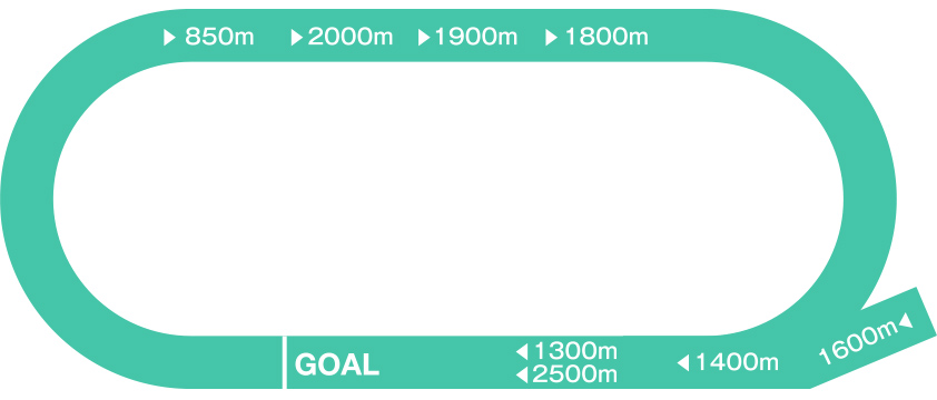 1周1200m、高低差が0mの右回りコースであり、広く起伏に富んだ左回りの盛岡競馬場とは対照的といえるコースです。