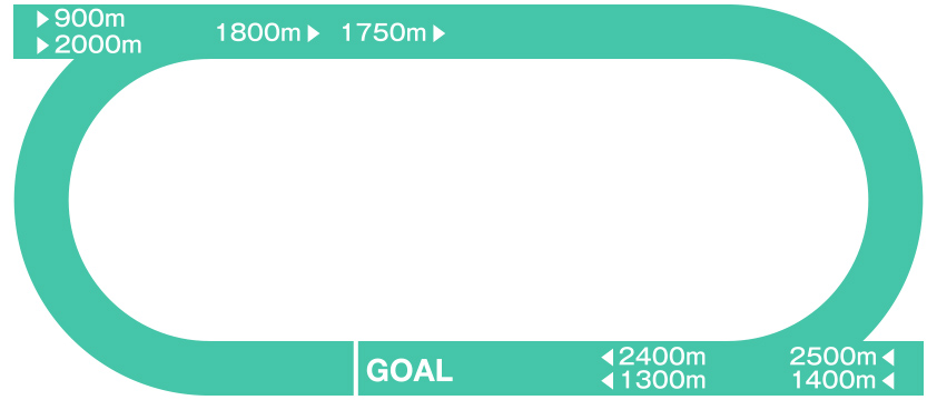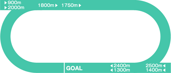 1周1100mの右回りで、高低差は1mとほとんど平坦。佐賀競馬場の砂はほかの競馬場に比べて粒が大きく、パワーがある馬の方が有利という傾向がある模様。