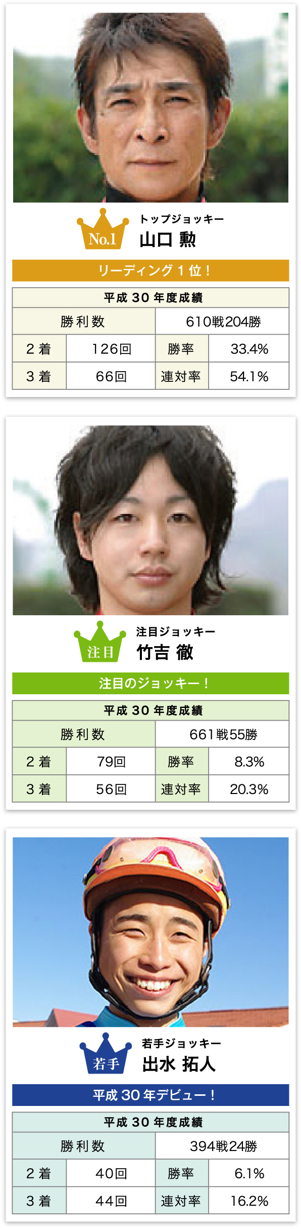 ※騎乗数・勝利数は、各所属競馬場での2018年11月21日終了現在のものです。