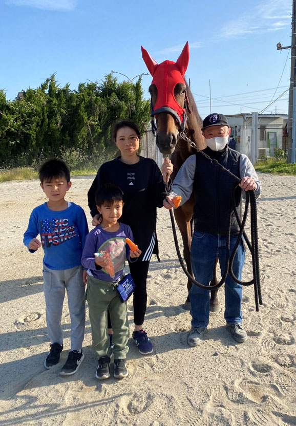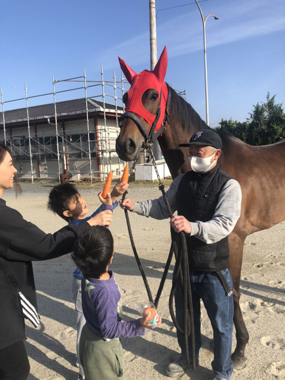 「北海道に帰って、お母さんになるみたいです。出発の日、子供たちとお見送りに行きました。ポルちゃんはニンジンが大好きなので、いっぱいニンジンを持って行って馬運車に積んでもらいました。ポルちゃんに似た可愛い子がきっと生まれてくると思います。コロナが落ち着いたら、北海道に会いに行きたいですね」