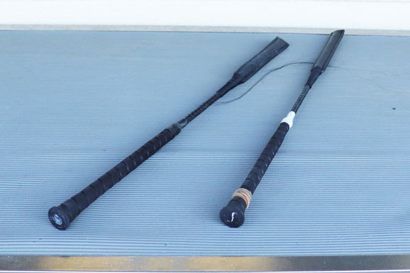 参考までに、写真左は一般的なムチ、右が佐々木騎手のムチです。