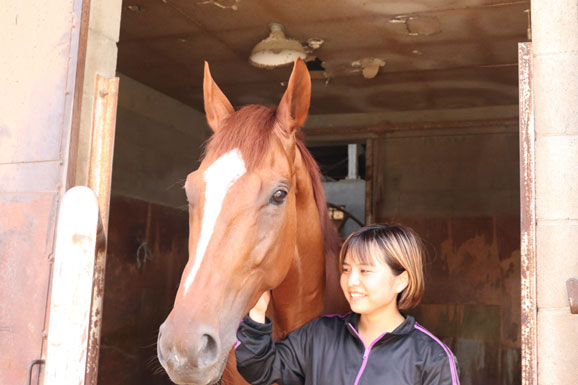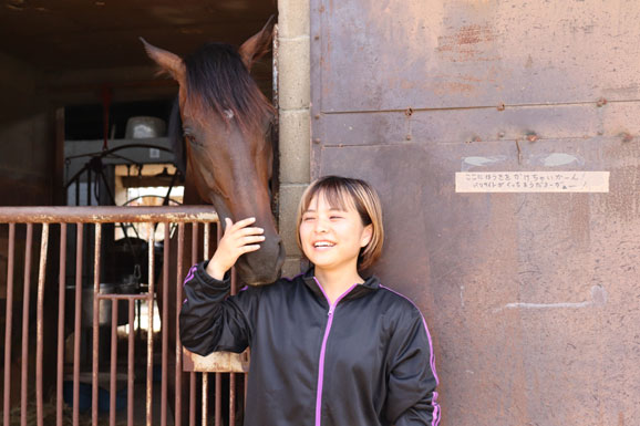 「馬が好きなので、調教後に馬を洗うのも好きだし、エサをあげる時も可愛くて触っています。馬に触れることは全部楽しいです!」