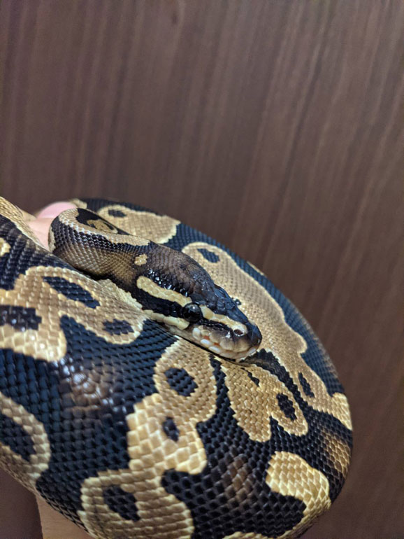 ボールパイソンという品種の1~2才くらいの男の子。