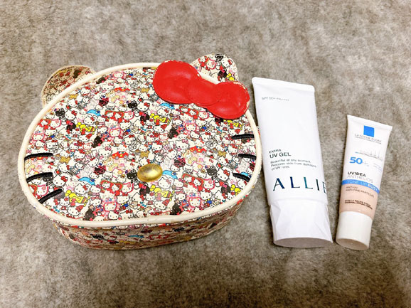 「必ず持って行くのはメイクポーチです。キティちゃんが好きで、もう5年くらいずーっと使っています。眉毛を描くペンもちょうど入るサイズで、使いやすいんですよね。