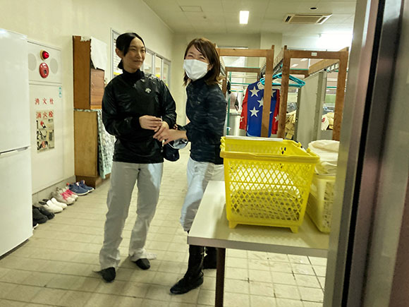 ▲「寒い~」と言いながらも楽しんだLJS盛岡。濱尚美騎手(右)と深澤杏花騎手(左)