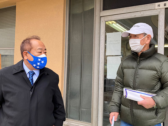 一緒に話しているのは宮下騎手の師匠である竹口勝利調教師。