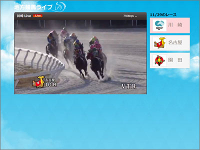 | 地方競馬ナインSELECT | 帯広・門別・盛岡・水沢・金沢・笠松・名古屋・園田・姫路・高知・佐賀 |